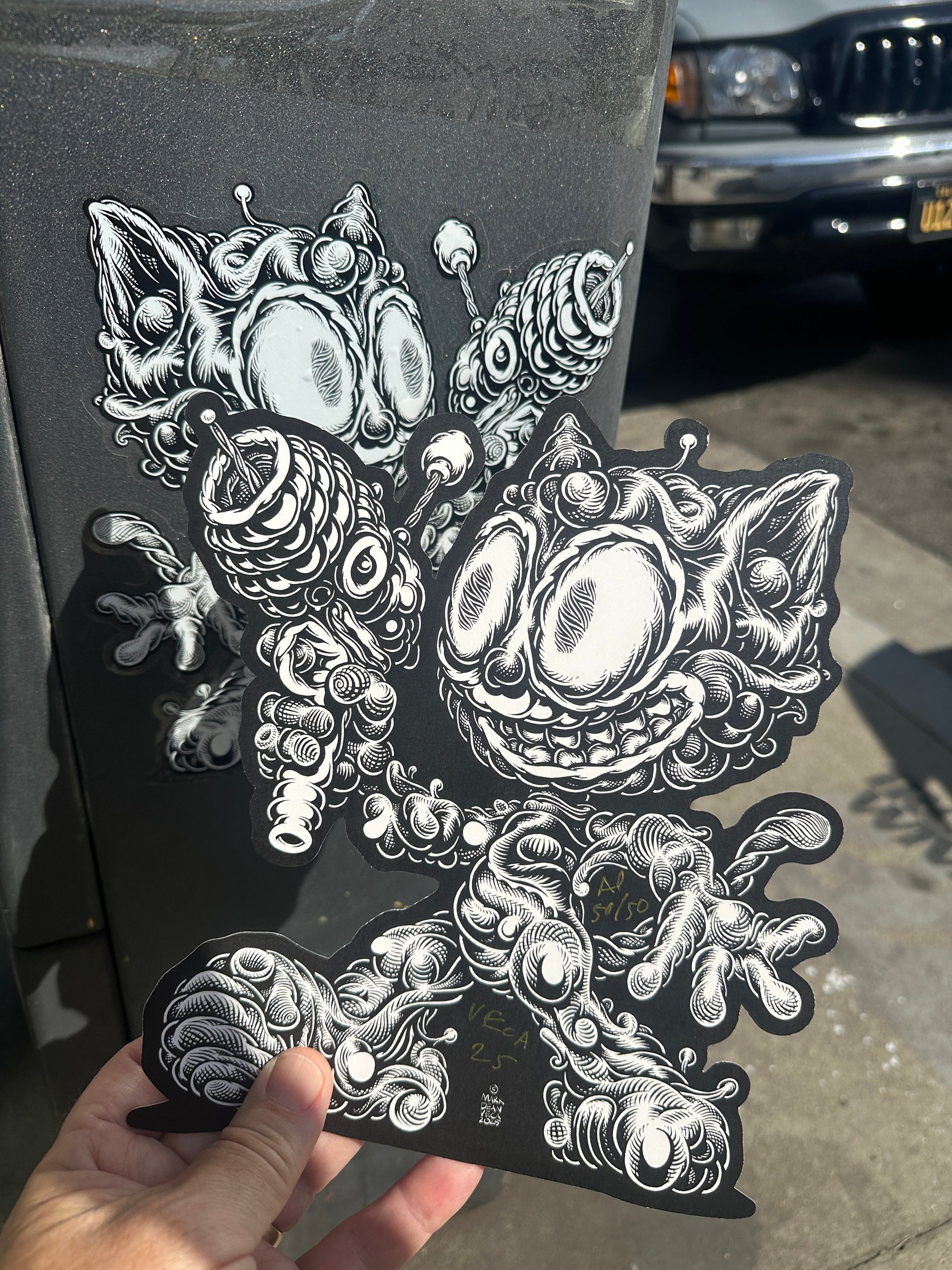 Two-color silkscreen on clear die-cut self-adhesive vinyl with one-color silkscreen backprint